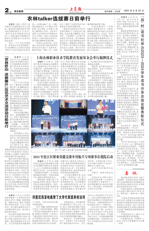 本报讯 6月21日,2024年松江区职业技能竞赛乡村振兴专项赛事开赛仪式在学院举行。区人力资源和社会保障局副局长马守亮,区农业农村委二级调研员沈根华,区市场监管局副局长杨彬,学院党委副书记、副院长邵阳出席仪式。