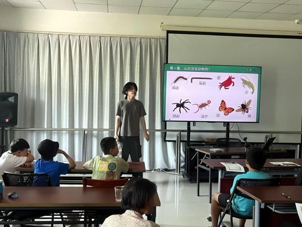学院大学生艺术团赴松江区德胜村开展“乡村美育”社会实践。本次实践以沙龙讲座形式,在德胜村青少年暑托班进行。团队成员为在村青少年、暑期返乡少年和村民们带来一场“农艺”视听“营养餐”——唱游大自然、生命音乐会。讲座将艺术与农学知识进行巧妙融合,从中西方乐器与动物发声的音色、音高中寻找特质,点燃大自然“万籁之音”与乡村田间“绿野仙踪”的火花碰撞,引得全场阵阵掌声。实践项目获得新民晚报的报道,艺术团指导老师赵琳娜在接受采访时说:“乡村也是大学生学习的机会,在利用自身特长服务乡村的过程中,大学生可以更好地了解基层、了解乡村,真切感悟乡村振兴的意义。”