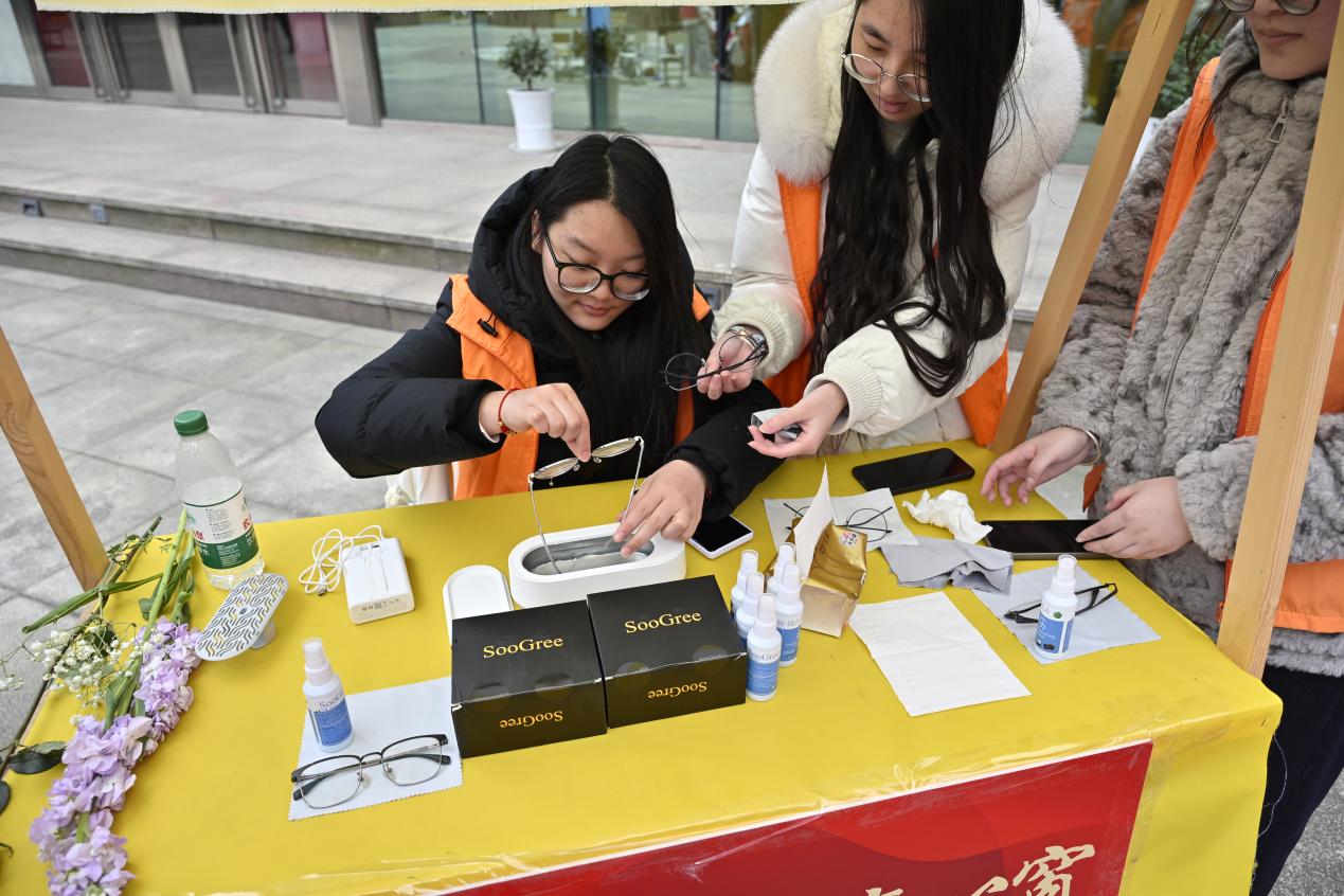生物医药与健康系推出“清晰视界 明亮心窗”清洗眼镜活动。志愿者们细心地为师生清洗眼镜,检查镜片的磨损情况,宣传科普爱眼护眼知识。