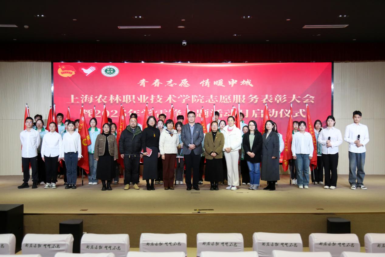 为弘扬雷锋精神,表彰优秀先进,我院还举行了“青春志愿 情暖申城”志愿者表彰大会暨学雷锋主题活动月启动仪式。仪式上,授予40人2024年度志愿者“标兵”称号、141人2024年度志愿者“先进个人”称号、15人第七届中国国际进口博览会“优秀志愿者”称号,授予上农轨道交通志愿者服务队等6个志愿服务团队2024年度“志愿服务先进集体”称号,授予阳光之家志愿服务项目等5个志愿服务项目2024年度“优秀志愿服务项目”称号,授予7人2024年度“志愿服务优秀指导教师”称号;为青年志愿者协会和22支志愿服务队授旗;志愿者标兵和志愿服务先进集体代表进行交流,分享了参加志愿服务的难忘经历,经验与心得。