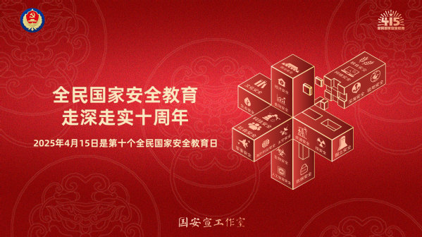 2015年7月1日实施的《中华人民共和国国家安全法》第十四条规定:每年4月15日为全民国家安全教育日。今年的4月15日是第十个全民国家安全教育日主题是:全民国家安全教育,走深走实十周年。