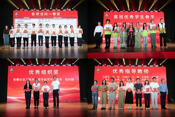 闭幕式上,对荣获各项活动学生、优秀指导教师以及优秀组织进行了表彰。474名学生在“新青年建功新时代”大学生微电影创作展示活动、第十二届园创绿色科技节等11项比赛中取得优异成绩,38名教职工荣获“优秀指导教师”称号,智慧农业工程系、数字经济与创意系、组织部荣获“优秀组织奖”。