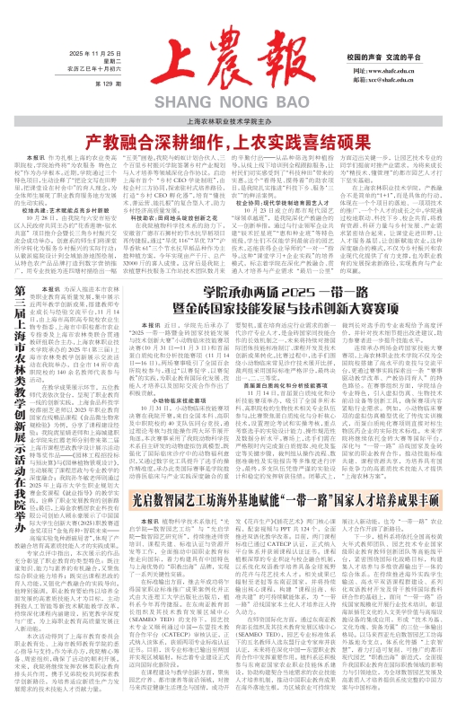 本报讯 植物科学技术系依托“光启学院—数智园艺工坊”与“光启学院—数智园艺研究所”,持续推进师资培训、课程共建、标准认证与资源开发等工作,全面推动中国职业教育标准走向国际,着力构建具有中国特色与上海优势的“职教出海”品牌,实现了一系列关键性突破。