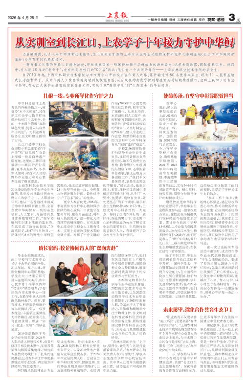 “职业教育不仅要培养‘能工巧匠’,更要培养‘有情怀的守护者’。”上海农林职业技术学院院长陈立婧在今年3月与水野中心负责人的座谈会上表示,与市水野中心的合作是学校“立足上海、服务‘三农’、对接生态”办学定位的生动实践。