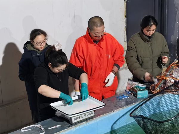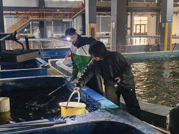 在中心基地,感人故事每天都在上演。极端台风天气期间,毕业生们始终坚守一线,彻夜巡查防护、加固设施、保障供氧与水质安全,全力守护中华鲟生命安全,确保基地平稳度险。2024至2025年中华鲟幼苗培育关键期,李海燕等骨干主动睡在育苗池边,实行24小时不间断值守看护,精心照料、细致监测,用坚守与担当守护幼鲟健康成长。