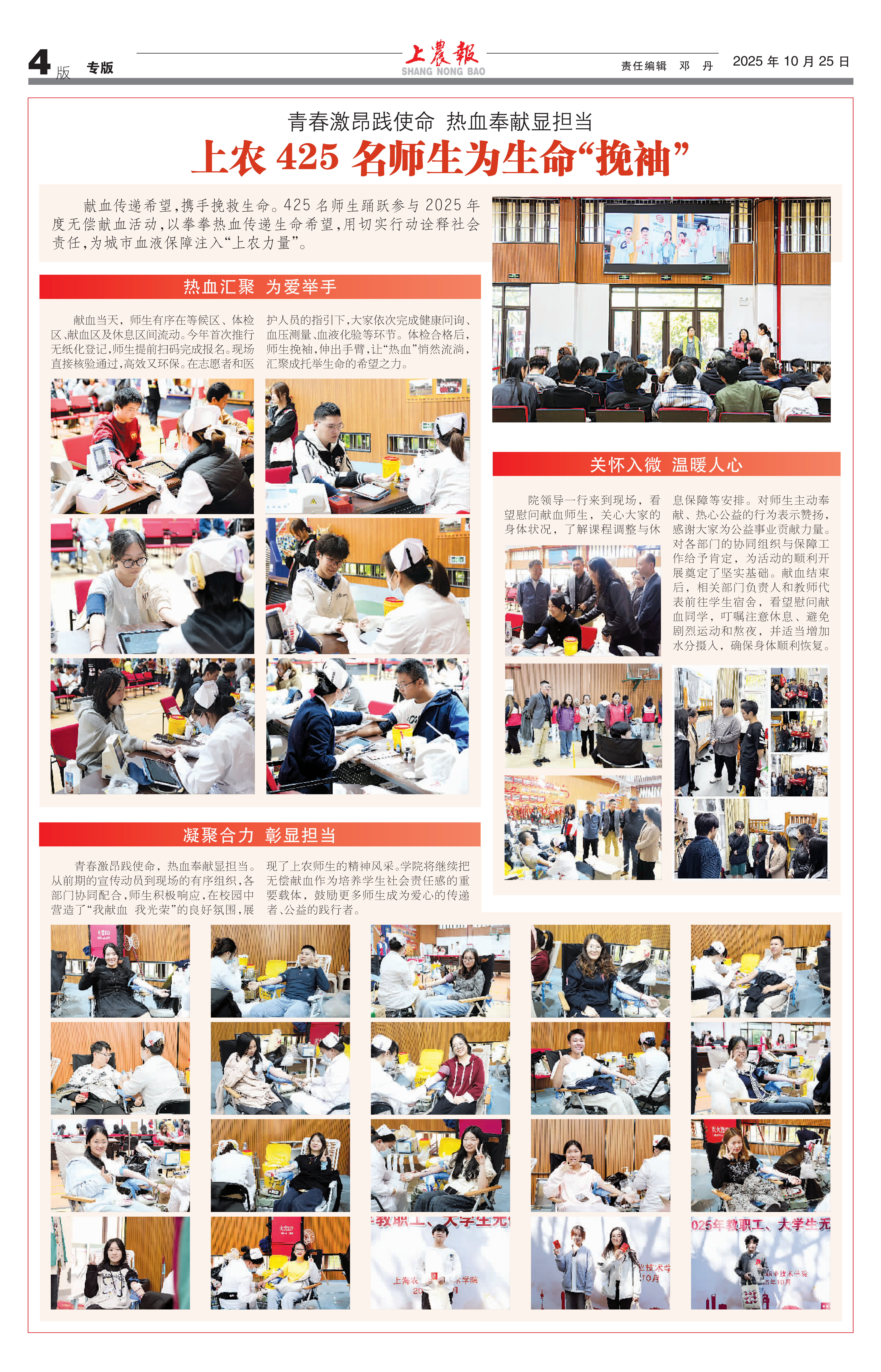 青春激昂践使命,热血奉献显担当 ——上农425名师生为生...